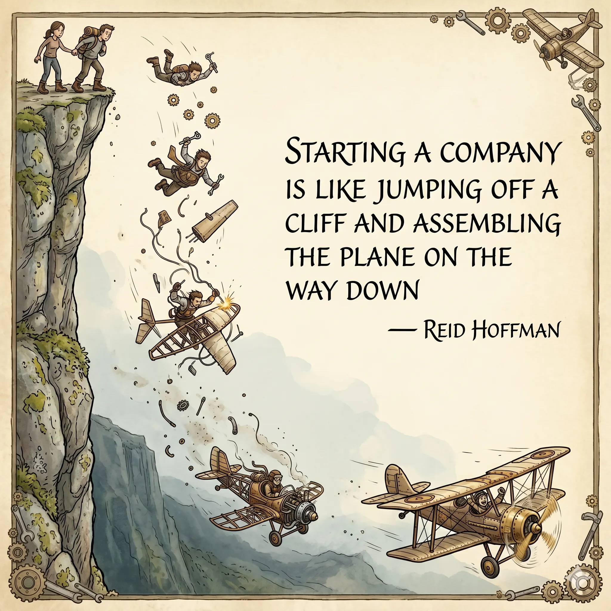 "You jump off a cliff and you assemble an airplane on the way down." -- Reid Hoffman, founder of LinkedIn.